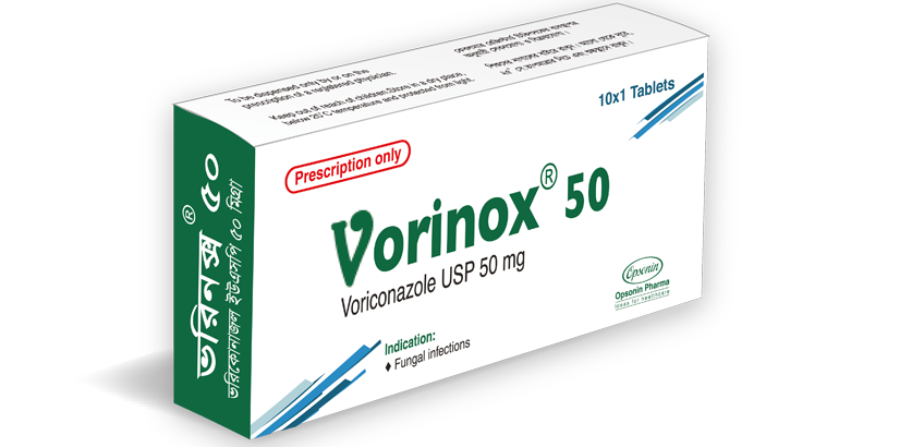 Vorinox® is an azole antifungal medicine which is indicated for the treatment of following fungal infections- ? Invasive aspergillosis ? Candidemia (nonneutropenic) and disseminated candidiasis in skin, abdomen, kidney, bladder wall and wounds ? Esophageal candidiasis ? Serious infections caused by Scedosporium apiospermum and Fusarium Species including Fusarium solani ? Patients intolerant of or refractory to other therapy