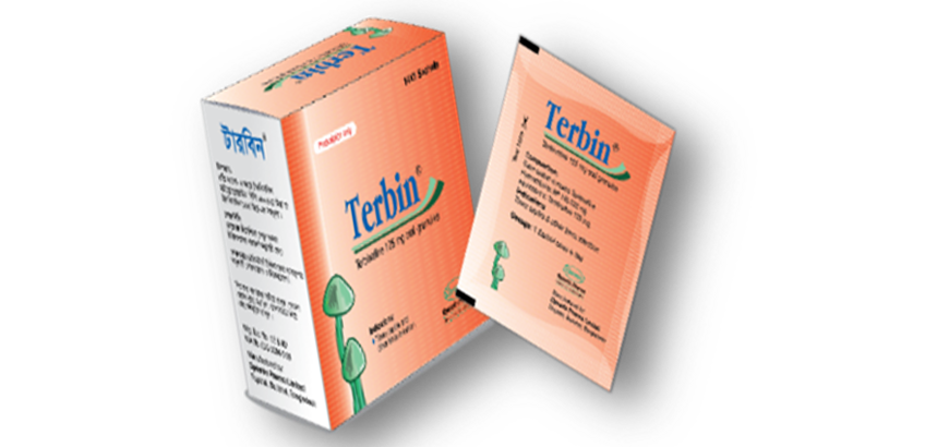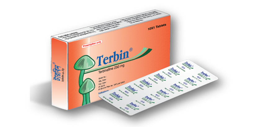 Terbinafine Hydrochloride (Terbin® ) works by inhibition of squalene epoxidase enzymes of fungus which is essential for the formation of ergosterol.