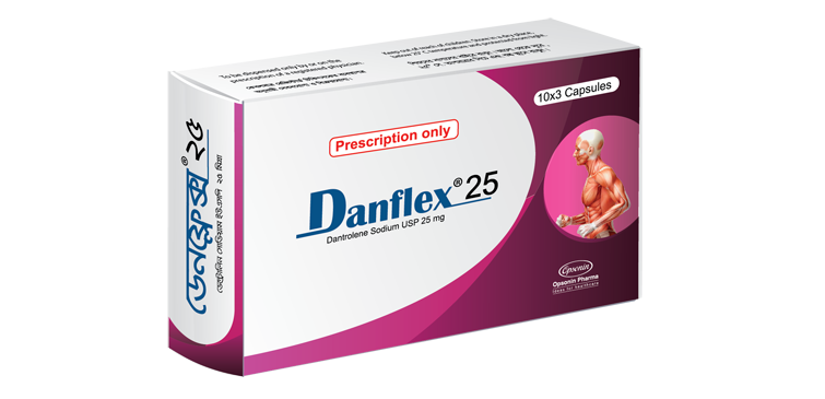 Danflex is a directly acting peripheral skeletal muscle relaxant that is used to treat muscle spasms & spasticity caused by conditions such as spinal cord injury, stroke, cerebral palsy, multiple sclerosis, malignant hyperthermia etc.