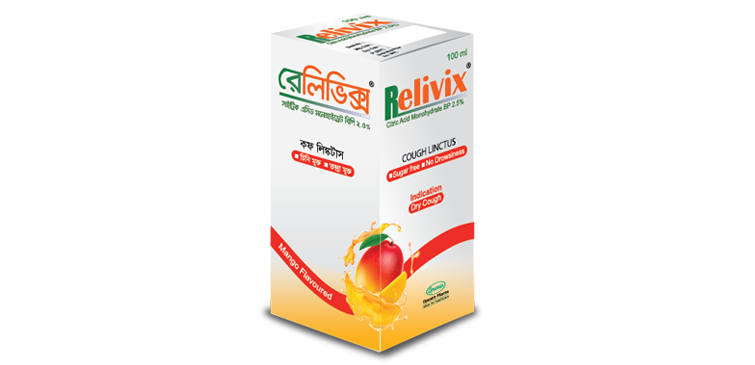 Relivix contains the active ingredient Citric Acid Monohydrate which helps to reduce the dry cough and soothes the throat from any related discomfort and pain.