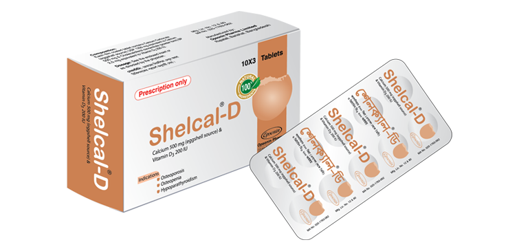 Shelcal® D is the combination of Calcium and Vitamin D3, where Calcium is obtained from eggshell source. Along with Calcium it contains small amounts of essential salts and minerals for bone development, including Magnesium, Phosphorus & Strontium. It is 100% natural, highly digestible, more absorbable and environment-friendly form of Calcium. It enriches the organic matrix of bones by helping the fixation of Calcium and increases bone density. It also contains soluble transport proteins for maximum absorption compared with other Calcium sources. Its absorption rate is higher than that of Algae, Coral, or Rock-based Calcium.