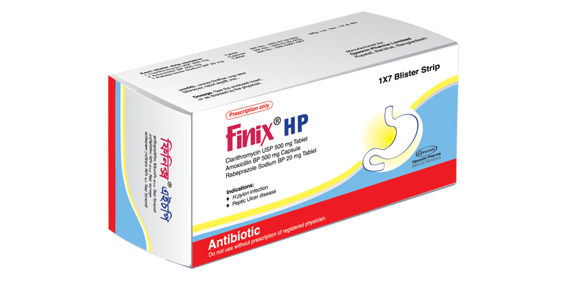 Finix® HP is indicated for the eradication of H. pylori in active chronic gastric, duodenal and gastric ulcers.