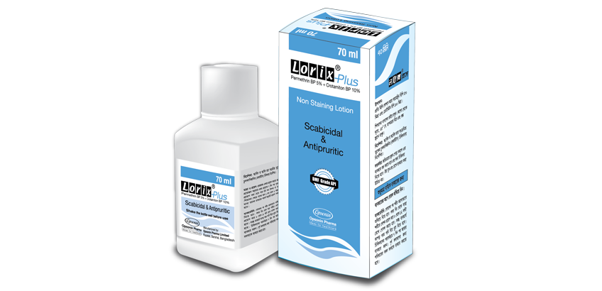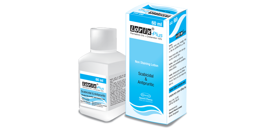 Lorix® Plus is a combination of Permethrin which is a photostable synthetic pyrethroid that possesses a broad spectrum of insecticidal activity and low mammalian toxicity and Crotamiton which is used to treat scabies infection. It is also used to relieve the itching of certain skin conditions.