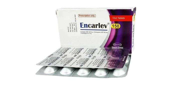 Encarlev is a combination of Levodopa, Entacapone and Carbidopa which is used to treat Parkinson's disease. Parkinson's disease is a disorder of the central nervous system (brain and spinal cord). Dopamine is a naturally occurring substance in the brain that helps to provide control of movement and activities such as walking and talking. In patients with Parkinson's disease, there is not enough dopamine in some parts of the brain. Levodopa (a component of this medicine) enters the brain and helps to replace the missing dopamine, which allows people to function better. By increasing the amount of dopamine in the brain, Levodopa helps to control symptoms and helps to perform daily activities such as dressing, walking, and handling utensils.