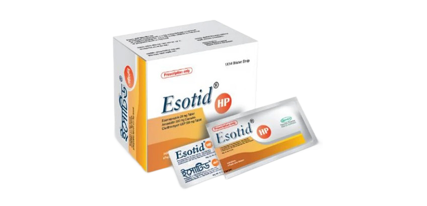Esotid HP is indicated for the eradication of H. pylori in active chronic gastric, duodenal and gastric ulcers.