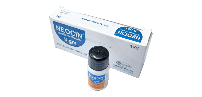 Neomycin inhibits bacterial protein synthesis. Bacitracin interferes with bacterial cell wall synthesis by inhibiting the dephosphorylation of a lipid pyrophosphate.