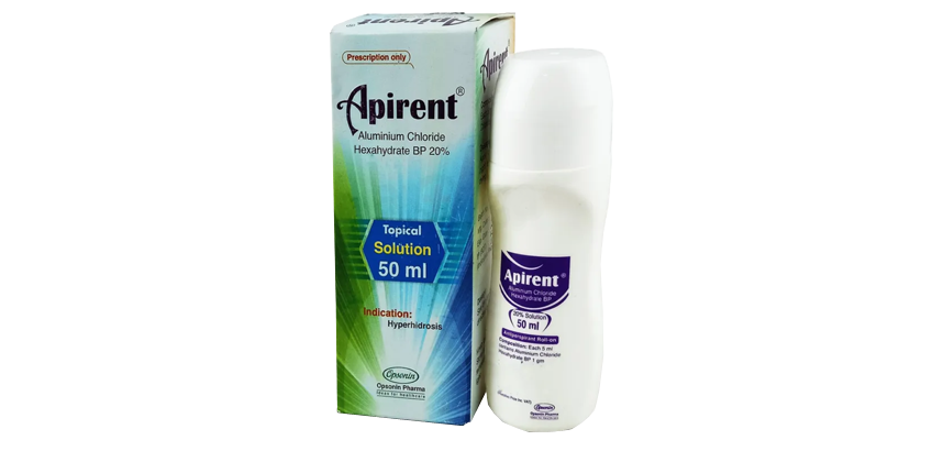 Apirent (Aluminium Chloride Hexahydrate 20%) is a drug to relieve of hyperhidrosis.