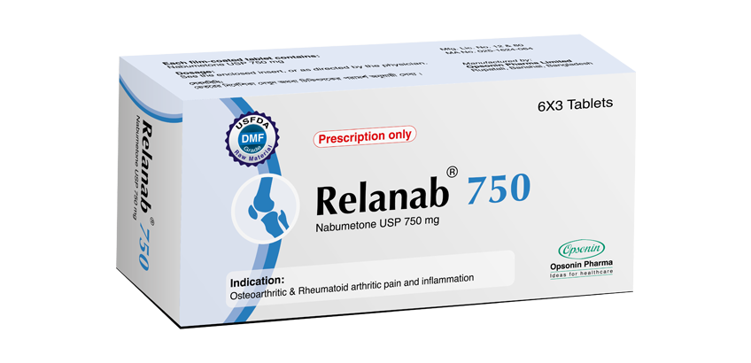 Relanab (Nabumetone) is indicated for the relief of signs and symptoms of osteoarthritis and rheumatoid arthritis.