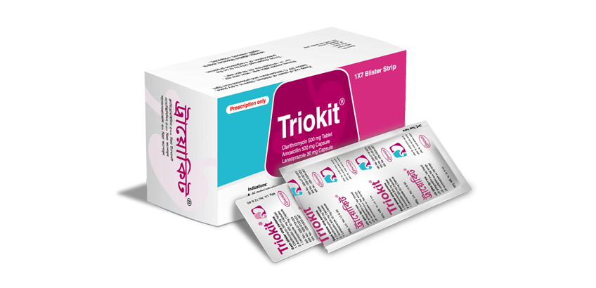 Triokit is indicated for the eradication of H. pylori in active chronic gastric, duodenal and gastric ulcers