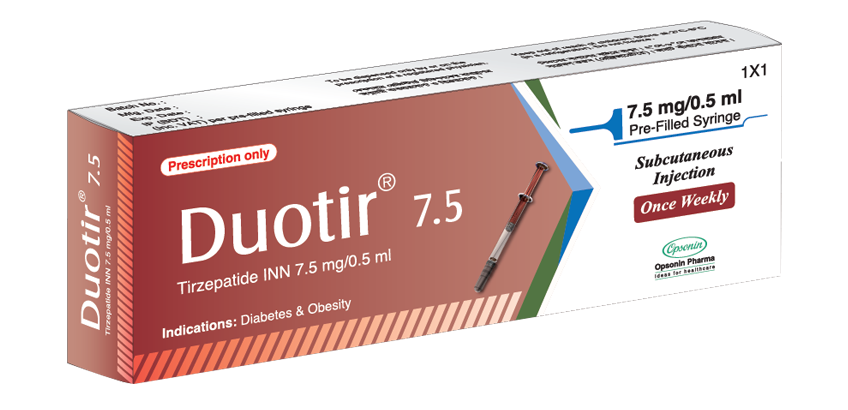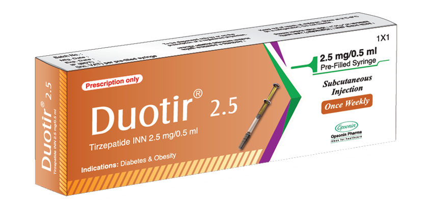 Duotir® is the preparation of Tirzepatide, a once-weekly GIP receptor and GLP-1 receptor agonist. It is a 39-amino-acid modified peptide based on the GIP sequence.